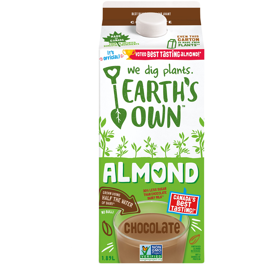 How do you make Canada’s Best-Tasting Almond Milk even better? We added creamy cocoa flavour to our planet-friendly drink. Enjoy a glass of chocolate almond milk! Use it to make some delicious popsicles or in your favourite baked goods. Or, make your dairy-free hot chocoalate even more decadent. We keep it light and delicious, with just the right richness to make for a perfectly balanced dairy-free chocolate milk. Earth's Own Chocolate Almond Milk is a delicious and planet-saving treat.