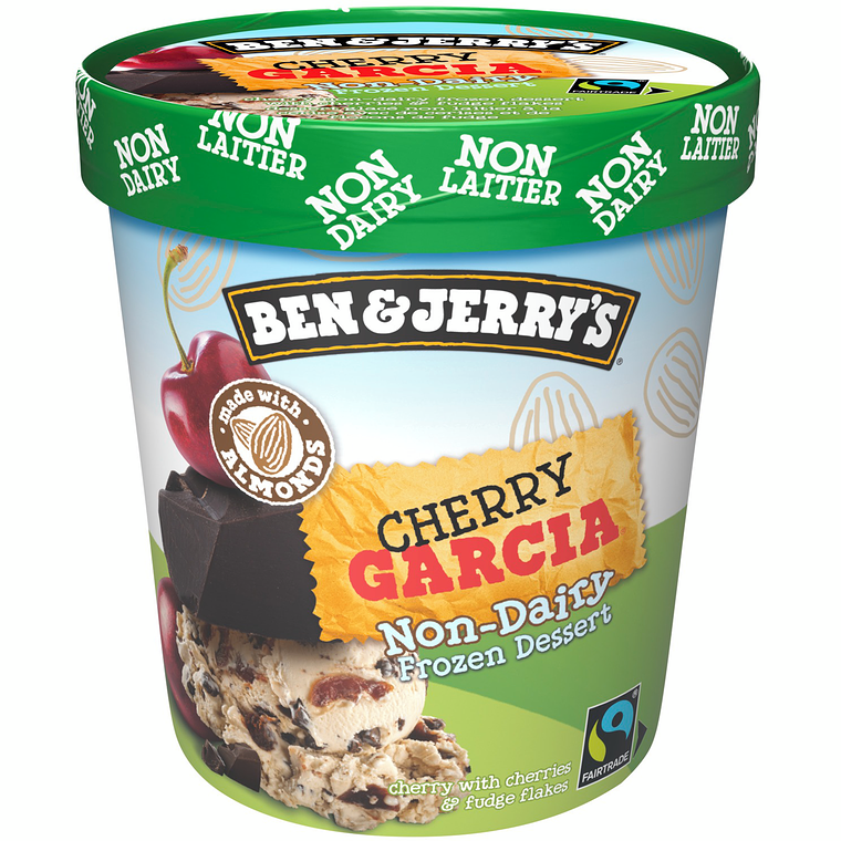 Ben & Jerry's Cherry Garcia® Non-Dairy Frozen Dessert pintThis vegan frozen dessert features dreamy almonds and is boldly loaded with cherries and fudgeBen & Jerry's Non-Dairy frozen desserts source Fairtrade certified cocoa, sugar, & vanillaBen & Jerry’s ice cream and non-dairy frozen desserts use responsibly sourced packagingCherry Garcia® vegan frozen dessert is made with almonds and is Certified KosherBen & Jerry's non-dairy frozen treat is made with non-GMO ingredients