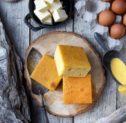 Ingredients: sour cream, cornmeal, butter, sugar, flour, eggs, salt, baking soda, baking powder.