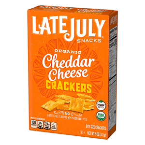 ingredients:Organic wheat flour, organic oleic safflower oil and/or organic oleic sunflower oil, organic cheese blend [organic cheddar cheese (organic cultured pasteurized milk, salt, enzymes), organic nonfat milk, organic whey, salt, disodium phosphate], organic palm oil, sea salt, yeast, baking soda, organic evaporated cane juice, annatto, enzymes.