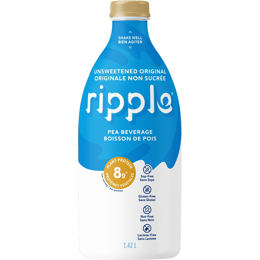 Soy free. Nut free. 100% vegan. Gluten free. Lactose free. Non GMO. . RIPPTEIN™. THE PUREST PLANT PROTEIN ON EARTH™.. Ripple uses a patent-pending natural method to harvest ultra-clean protein from peas, remo