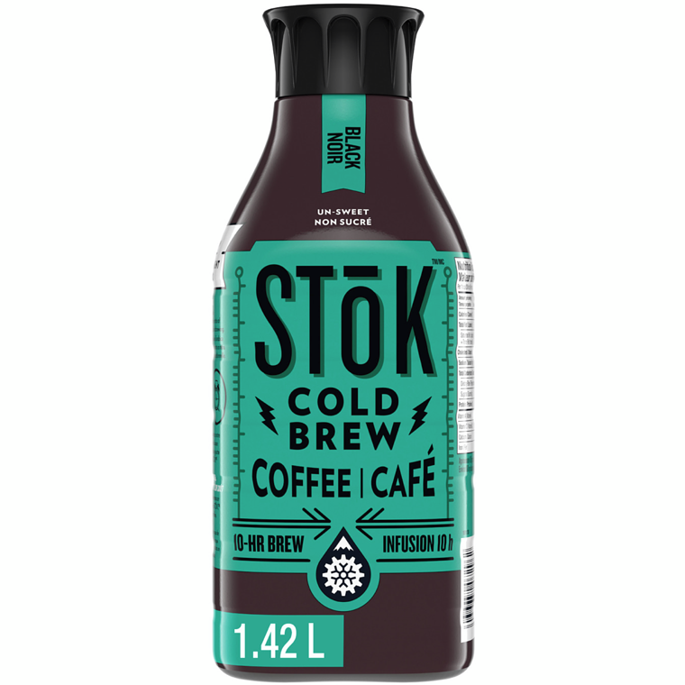 Take your favourite black cold brew coffee home with you in a larger 1.42L size. Bigger Bottle, but every bit as bold: Arabica based blend delivers a coffee-first flavour with no cream and no sugar. Just pure Stok-ness and majesticness.100mg of caffeine per servingBrewed low and slow for 10 hoursCoffee grown by UTZ certified farmersDairy Free0g of sugar per servingKosher Certified