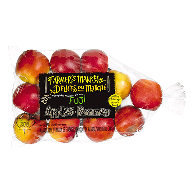 Fuji apples are a cross between the Red Delicious and Ralls Janet varieties. They are typically red with greenish-yellow stripes and have a sweet flavour. Enjoy Fuji apples fresh as a snack, in your homemade applesauce, or baked with some cinnamon and brown sugar.
