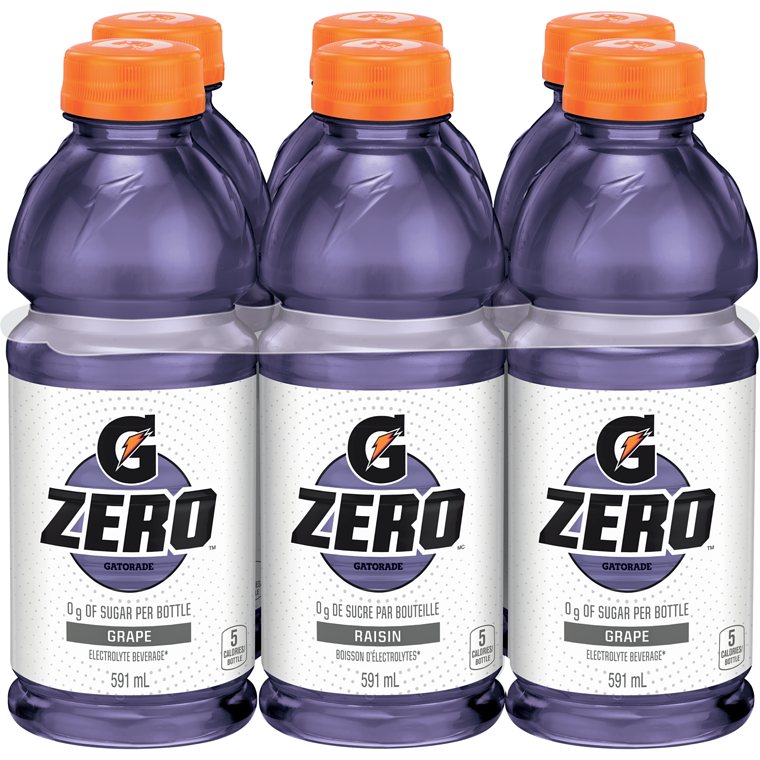 With all the electrolytes, and zero grams of sugar per bottle, G Zero Grape sports drink has been developed to help athletes rehydrate & replenish fluids that are lost in sweat. This 6-pack of 591 mL bottles is specifically designed for athletes who want to be at their best in the gym, at practice, and in games.