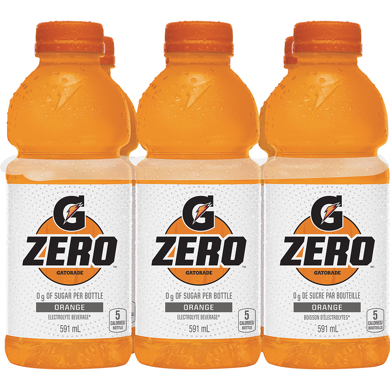 New.0 g of sugar per bottle.5 calories/bottle.Electrolyte beverage*.*Electrolytes per 591 ml serving: 270 mg sodium, 182 mg chloride, 75 mg potassium