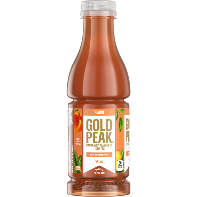 "Gold Peak is made from real tea leaves picked for peak taste - enjoy Gold Peak Peach Tea bursting with refreshingly natural flavours. Perfect for the whole family, these convenient bottles let you take real tea wherever you go.Gold Peak Real Tea has a variety of flavours that pair marvelously with any family occasion, from backyard get-togethers, to holiday traditions, to a weekend getaway.Real Tea for Real Families." Enjoy the delicious home-brewed taste of Gold Peak iced teaMade with real teaNo added coloursNo preservativesCrafted with quality ingredients like real tea, filtered water, and lightly sweetened with cane sugarGold Peak is the perfect complement to the moments that matter most