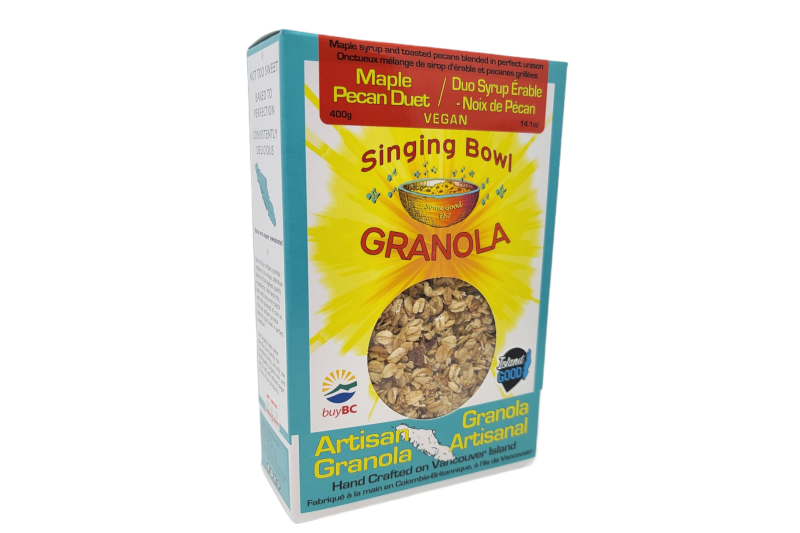 Ingrédients: Flocons d’avoine biologique (B); Sirop d’érable; Huile de canola (B); Noix de Pécans
