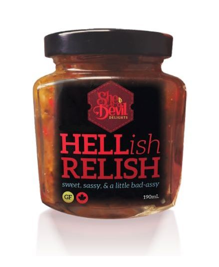 Hellish Relish is a moreish mixture of fresh seasonal chili peppers and onions, cooked up with mustard seed, vinegar, salt and a sprinkle of sugar to create a sweet and sassy taste sensation that you can enjoy on almost anything OR straight out of the jar! This variety has BITE and would be considered medium/hot'ish