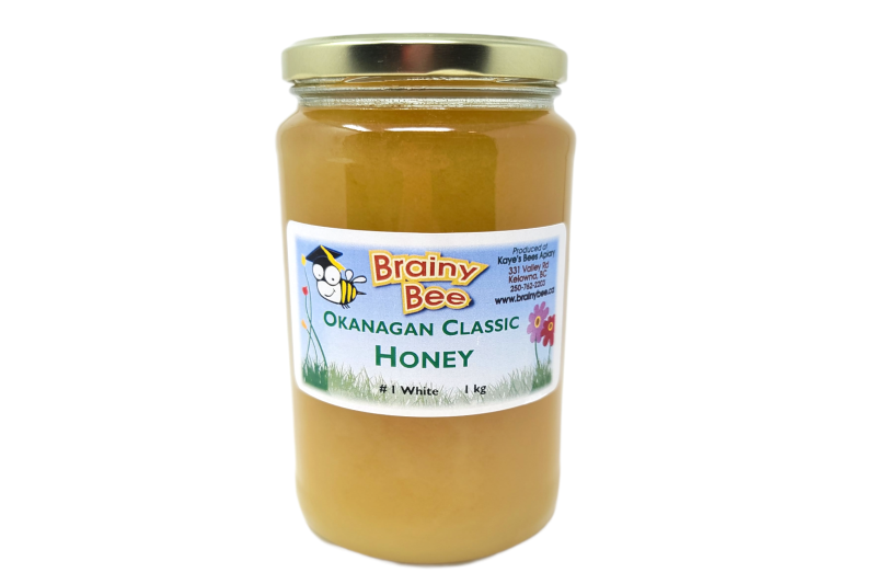 Brainy Bee Honey -- A Kelowna based, family run honey business. Specializing in honey, honey products and orchard pollination. Our bees collect honey from the Okanagan and Cariboo regions of the B.C. interior. Okanagan classic features blended nectars from alfalfa, sweet clover and wild flowers. We use the Brainy Bee brand and our honey is not pasteurized