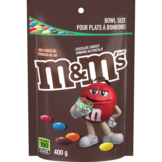 Enjoy the classic that’s loved around the world! M&M'S have been one of the most famous candy treats in the world since 1941. The bite-sized pieces of chocolate in a colourful candy shell are instantly recognizable all over the globe. Made with real milk chocolate and crunchy candy shells, M&M’S Milk Chocolate Candies are a classic treat and crowd favourite. Perfect for parties and celebrations of all kinds, these tasty candies are sure to delight friends and family. Take these bite-size chocolates with you on the go or pass a pack around during study breaks. Stock up and keep M&M'S Milk Chocolate Candy on hand for birthday parties, neighborhood get-togethers or movie nights. Don’t forget to save some for yourself; these chocolate treats are a delightful way to wind down at the end of the day. Decorate party favours with M&M’S Milk Chocolate Candy or add these colourful chocolates to candy buffets and dessert tables. Add a dash of fun and brighten up your favourite dessert or power snack recipe by mixing in M&M’S Chocolates. Best of all, these tasty candies are easy to share with friends. Bring summer candy on road trips, camping or glamping for a trustworthy chocolate treat. Stack your pantry at home to have options for summer dessert recipes or ice cream toppings. Share delicious, colourful fun with M&M'S Milk Chocolate Candy!One pouch contains 400g of M&M'S Milk Chocolate CandiesThis classic candy has a chocolate center and a colourful candy shellM&M'S Chocolate Candies are perfect for serving at your next big celebration, event or for candy buffets at partiesFrom cookies to trail mix, M&M'S Milk Chocolate Candies are a perfect way to add colourful fun to your favourite desserts and baked goodsFill your candy bowl with M&M'S Milk Chocolate Candy and share with friends and coworkers