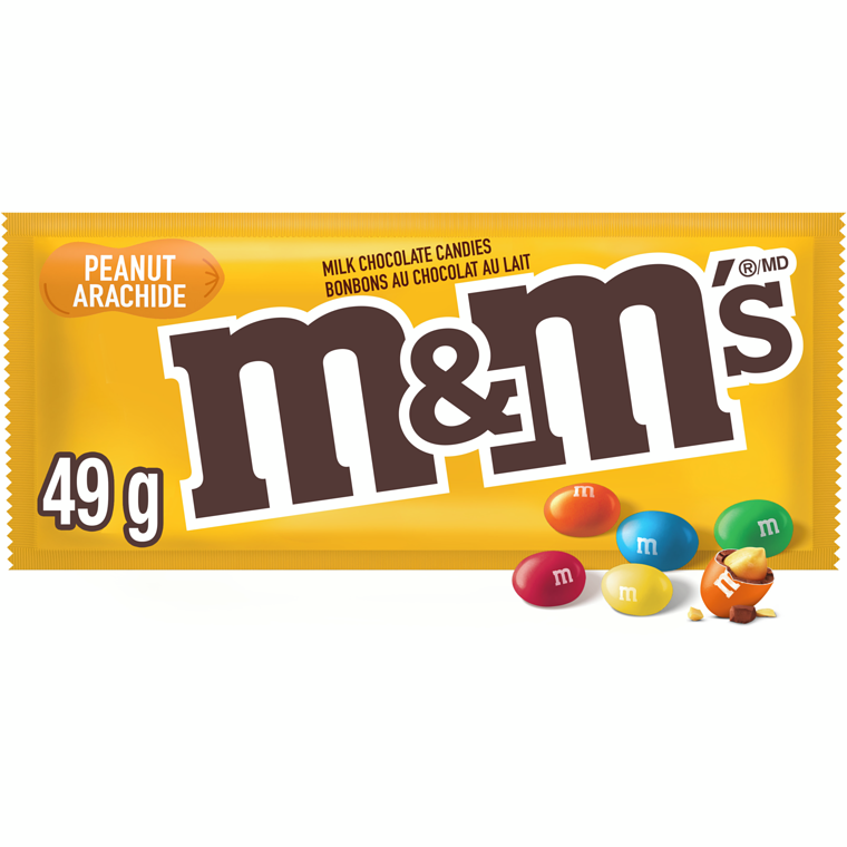 Enjoy the classic that’s loved around the world! M&M'S have been one of the most famous candy treats in the world since 1941. The bite-sized pieces of chocolate in a colourful candy shell are instantly recognizable all over the globe. M&M'S Peanut Chocolate Candies are a little nutty, a lot tasty and always full of fun. Enjoy roasted peanuts covered in delicious chocolate and a colourful candy shell. Perfect for parties and celebrations of all kinds, these tasty candies are sure to delight friends and family. Take these bite-size chocolates with you on the go or pass a pack around during study breaks. Stock up and keep M&M'S Peanut Chocolate Candy on hand for birthday parties, neighborhood get-togethers or movie nights. Don’t forget to save some for yourself; these chocolate treats are a delightful way to wind down at the end of the day. Decorate party favours with M&M’S Peanut Chocolate Candy or add these colourful chocolates to candy buffets and dessert tables. Add a dash of fun and brighten up your favourite dessert or power snack recipe by mixing in M&M’S Chocolates. Best of all, these tasty candies are easy to share with friends. Bring summer candy on road trips, camping or glamping for a trustworthy chocolate treat. Stack your pantry at home to have options for summer dessert recipes or ice cream toppings. Share delicious, colourful fun with M&M'S Peanut Chocolate Candy!Contains one (1) 49g Singles Bag of M&M'S Peanut Chocolate CandiesMade with roasted peanuts and real milk chocolate surrounded by a colourful candy shellM&M'S Chocolate Candies are perfect for serving at your next big celebration, event or for candy buffets at partiesFrom cookies to trail mix, M&M'S Peanut Milk Chocolate Candies are a perfect way to add colourful fun to your favourite desserts and baked goodsFill your candy bowl with M&M'S Peanut Milk Chocolate Candy and share with friends and coworkers