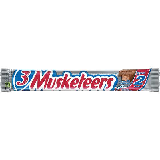 3 Musketeers is a candy bar consisting of chocolate-covered, fluffy, whipped nougat.