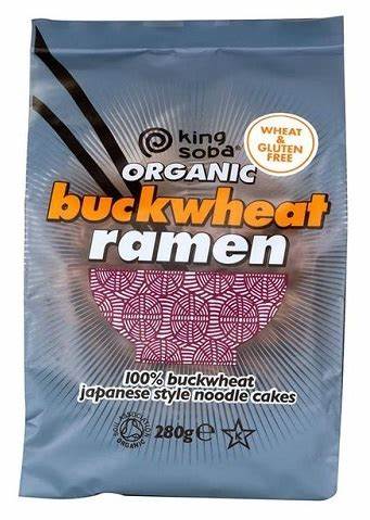 King Soba Organic Buckwheat Ramen is made of 100% buckwheat and comes in a pack of 4 Japanese style noodle cakes.