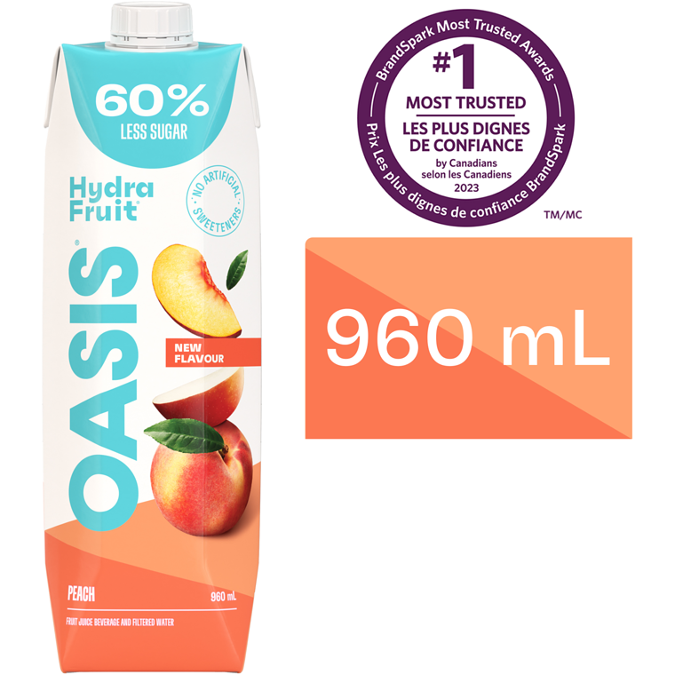 Oasis Hydra Fruit Fruit Juice Beverage And Filtered Water Peach