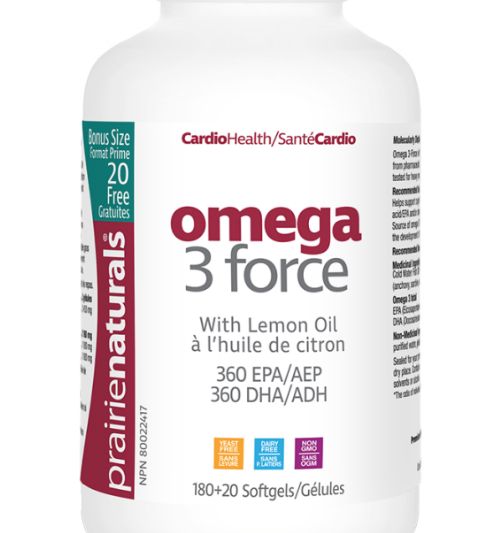 Experience the hundreds of proven health advantages of omega 3 fatty acids by choosing Prairie Naturals Omega-3-Force. This pharmaceutical grade, molecularly distilled super fish oil blend (anchovy, sardine, cod & tuna) has been tested to ensure purity.