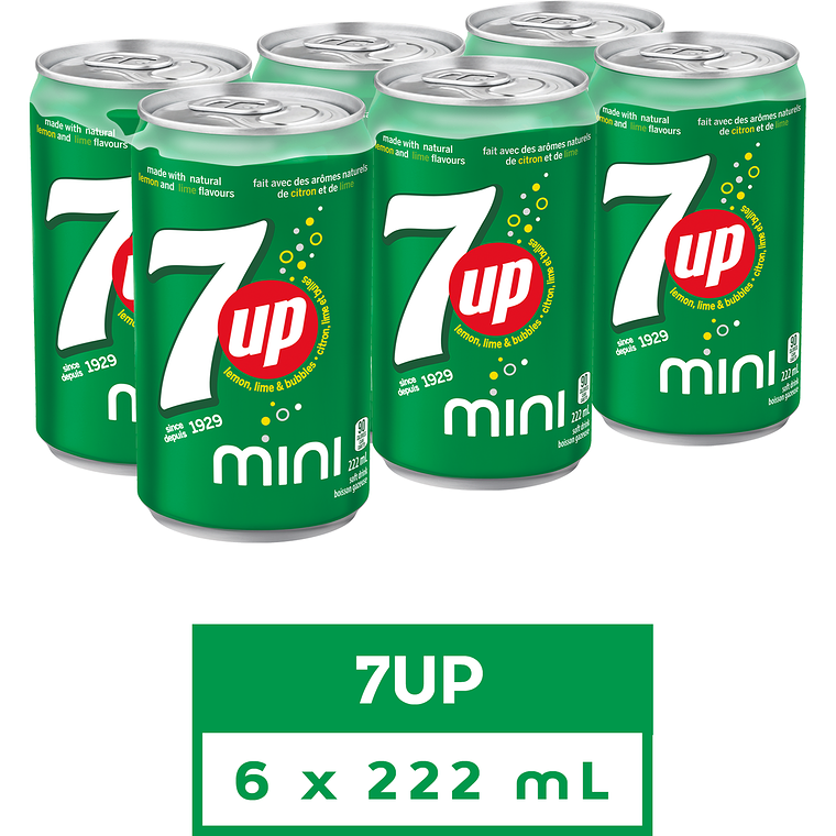 7Up Soft Drink, 222 Ml Cans, 6 Pack