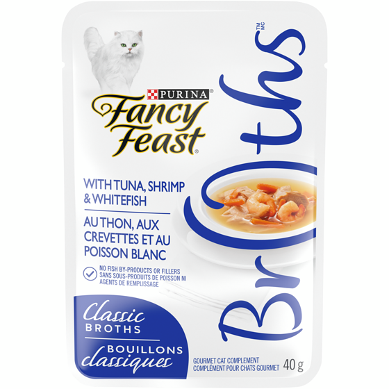 Purina,Fancy Feast Classic Broths with Tuna, Shrimp & Whitefish, Cat Food Complement