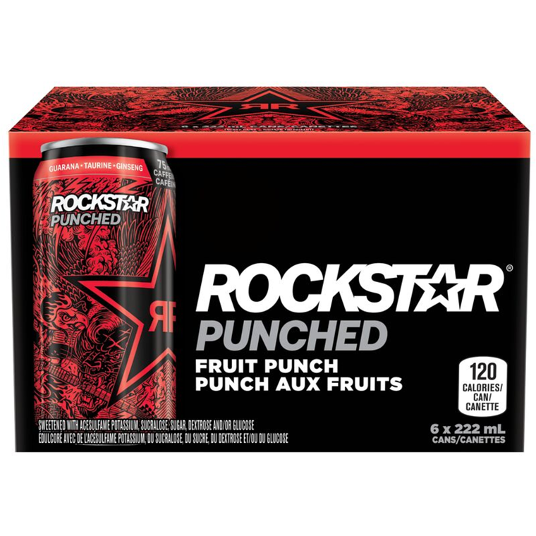 Rockstar Punched Fruit Punch Energy Drink, 6 Pack