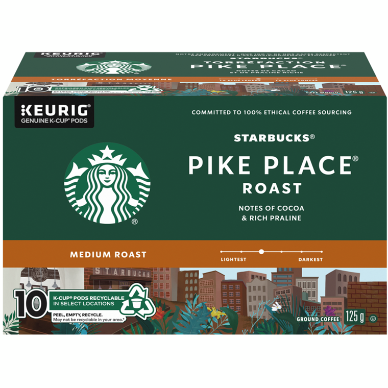 In 1971 we opened our first store in Seattle’s Pike Place Market. Reflecting on our heritage inspired us to create this delicious blend with smooth body and subtle flavours of cocoa and toasted nuts. Brewed fresh every day in our stores, it’s a rich, satisfying and balanced cup. Designed for use with the Keurig Single Cup Brewing System to provide a premium brewed coffee experience in less than a minute—without the mess.100% Arabica CoffeeSmooth & BalancedGrowing Region of Latin AmericaMedium Roast