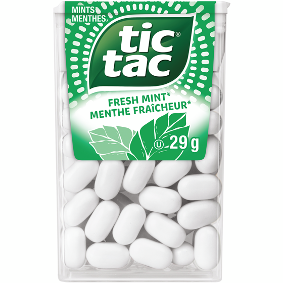 Enjoy the original minty taste of tic tac® Fresh Mint. Each 29g pack is filled with mints ready to boost your confidence and refresh your day. The portable pack fits perfectly in your pocket or purse—great for on-the-go sharing and refreshment. Refreshing moments are just a tic tac® away.You’ll receive one (1) - 29g pack of tic tac® Fresh Mint.Each tic tac® Fresh Mint is made with 100 layers of flavour for a refreshing and delicious taste.Whether you enjoy one or several at a time, the iconic flavour of tic tac® Fresh Mint delivers refreshment whenever you need it.Pop a tic tac® Fresh Mint whenever you need a refreshing confidence boost.