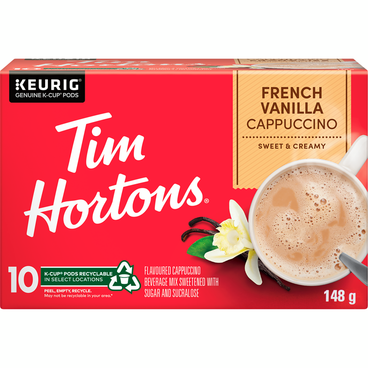 Enjoy your Tim Hortons favourites like our premium blend coffee and specialty beverages in single serve cups at home. Sweet and creamy French Vanilla and coffee flavours combine for the ultimate comfort in a cup.