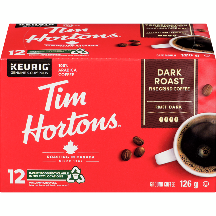 Roasted with care..Tim Hortons Dark Roast Coffee is made with 100% Arabica beans selected from the world's most renowned coffee growing regions. This premium blend coffee is roasted with care to deliver a rich and full flavoured dark roast coffee, with a smooth finish.