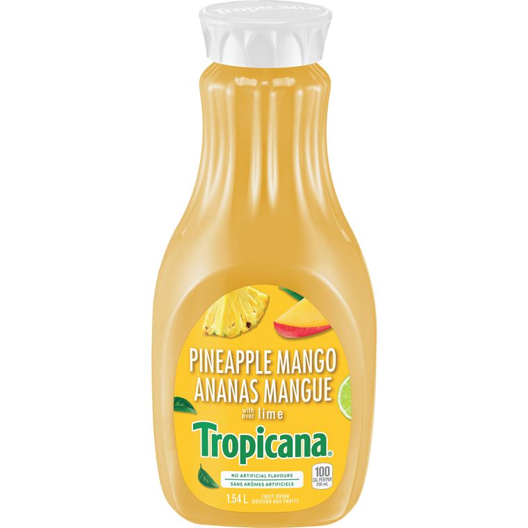 Tropicana® Pineapple Mango with Lime is a quality, refreshing beverage made with real fruit juice concentrates and no artificial ingredients. This 1.54 L bottle is perfect for sharing with friends and family.