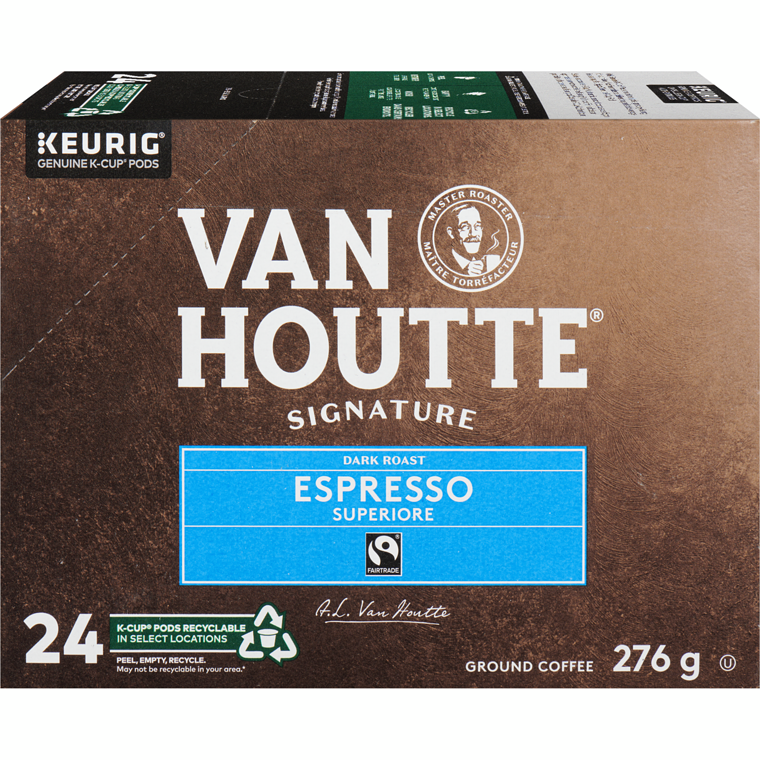 Keurig®Genuine K-Cup® podsMaster roaster Van Houtte®A.L. Van HoutteMaster roaster Since 1919Woodsy and richQuality bean selectionCommitted to 100% responsibly sourced coffeeApproved by our master roasterFairtrade certified / fairtrade.caOnly Genuine K-Cup® pods are optimally designed by Keurig for your Keurig® coffee maker to deliver the perfect beverage in every cup. keurig.ca/genuinek-cuppod